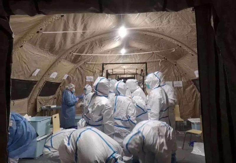 武漢客廳方艙醫(yī)院在金銀潭醫(yī)院對(duì)面,于2月7日19時(shí)開始收治病人,昨天夜班過去,病人已接近滿倉,做好嚴(yán)密防護(hù)后,隨即全心投入戰(zhàn)斗工作!
