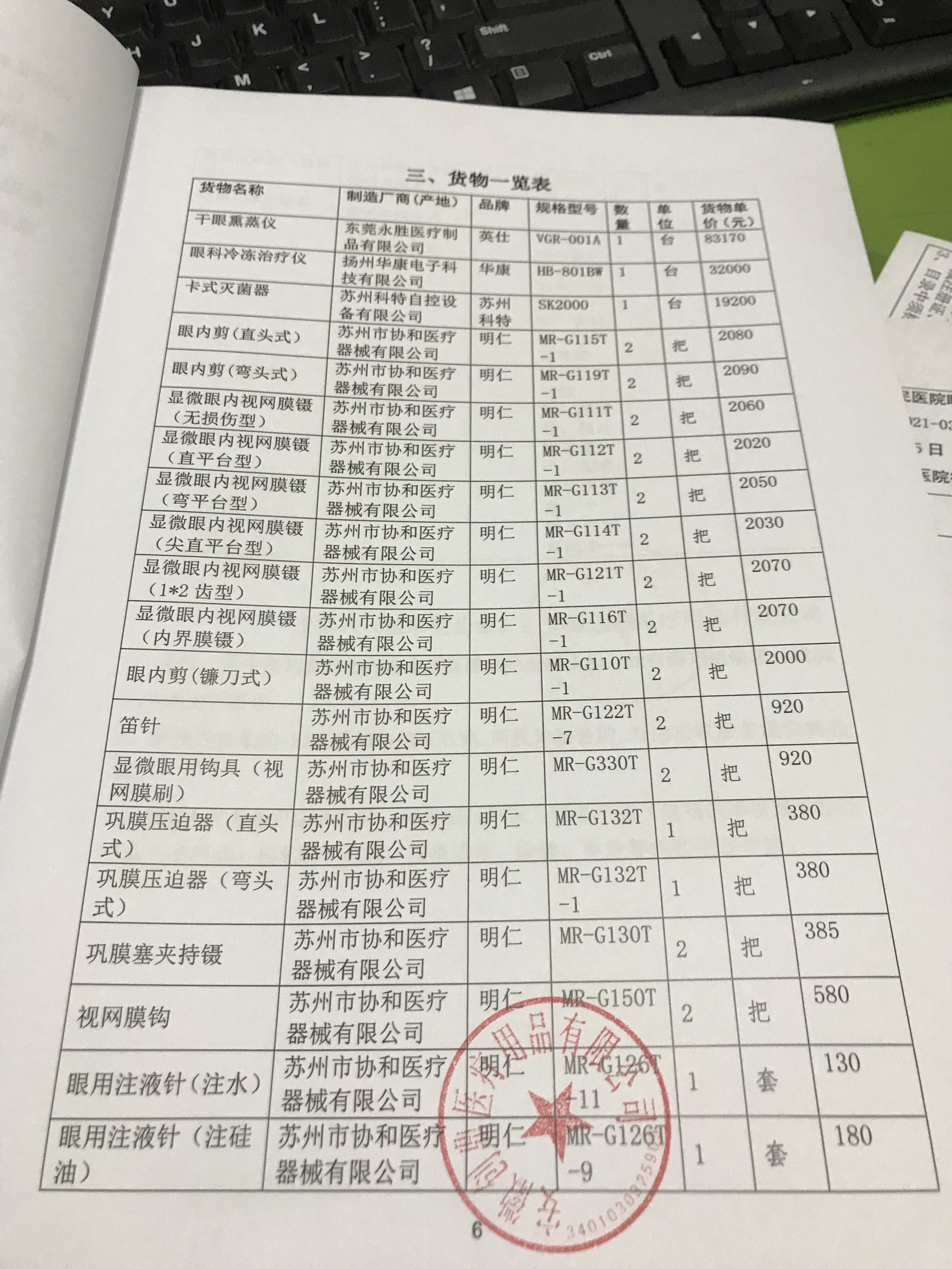 主要成交標(biāo)的的名稱:眼科設(shè)備(干式熏蒸儀、眼科冷凍治療儀、卡式滅菌器)及玻切手術(shù)器械