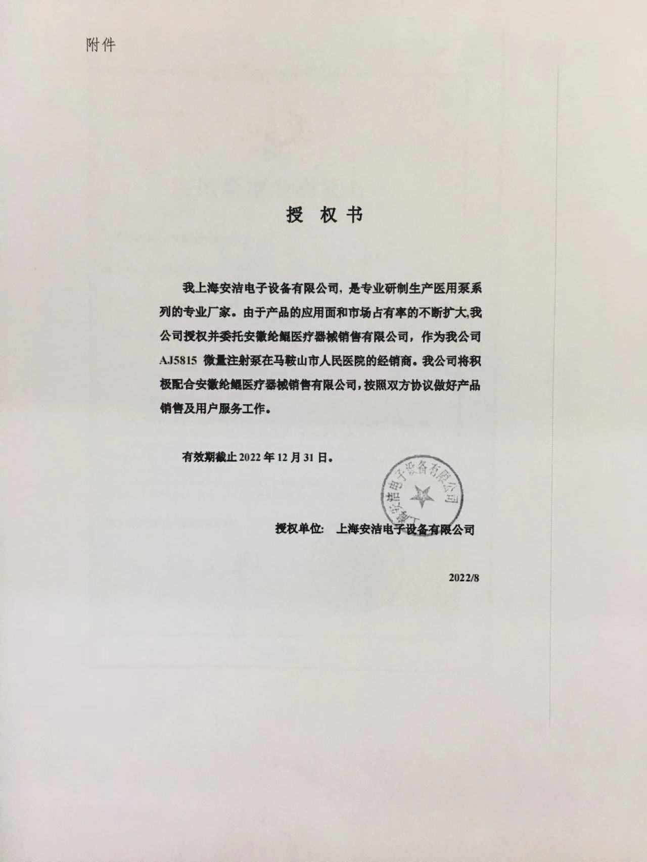 采用單一來源采購方式的原因及說明:因工作需要腫瘤化療科擬采購12套便攜式注射泵,須能夠由病人佩戴在身上注射化療藥物,且能夠使用50ml注射器。職能科室邀請(qǐng)專家論證同意采購上海安潔電子設(shè)備有限公司AJ5815注射泵可以達(dá)到相關(guān)要求,且具備兩項(xiàng)專利(見附件)。擬單一來源采購便攜式注射泵。鑒于以上原因,依據(jù)《政府采購法》第三十一條采用單一來源采購方式的條件“只能從唯一供應(yīng)商處采購的”條款,同意采用單一來源方式采購