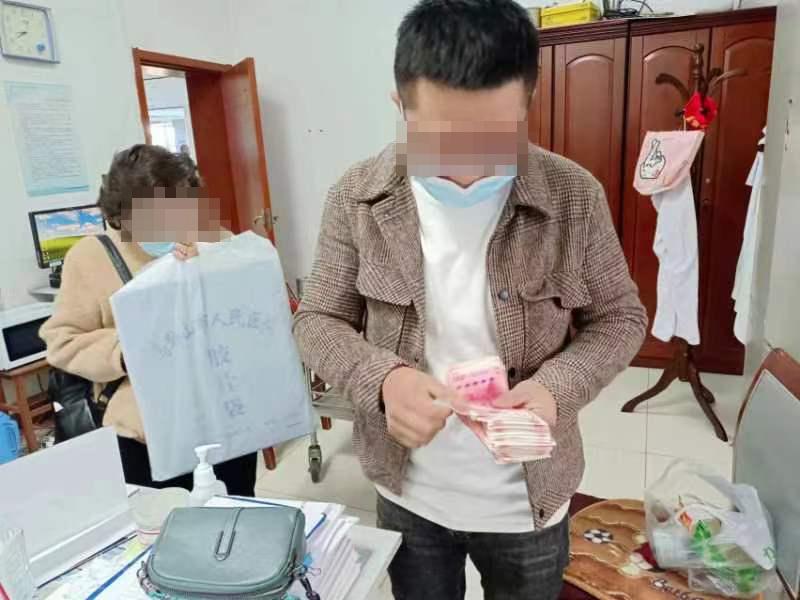 10月9日下午,門診部三層導醫(yī)們正在有序地開展掛號、分診、候診等日常工作。導醫(yī)李萍在分診掛號時,看到候診區(qū)椅子上有遺落的包。她立即將包撿起,大聲詢問有誰丟了包,無人應(yīng)答。隨即向三層導診臺尋求幫助,經(jīng)她們積極尋找失主依然未果。李萍按照失物認領(lǐng)流程,將包交給了門診總服務(wù)臺,并電話向門診部負責人進行了匯報。經(jīng)過清點包內(nèi)物品,發(fā)現(xiàn)有醫(yī)??ǖ茸C件和6500元現(xiàn)金。失主此時肯定萬分著急,門診部立即通過信息系統(tǒng)查找到電話號碼后聯(lián)系上失主。失主袁先生萬分感謝,此時他已回當?shù)?,表示第二天來認領(lǐng)。次日早晨就發(fā)生了文章開頭暖人心的一幕。