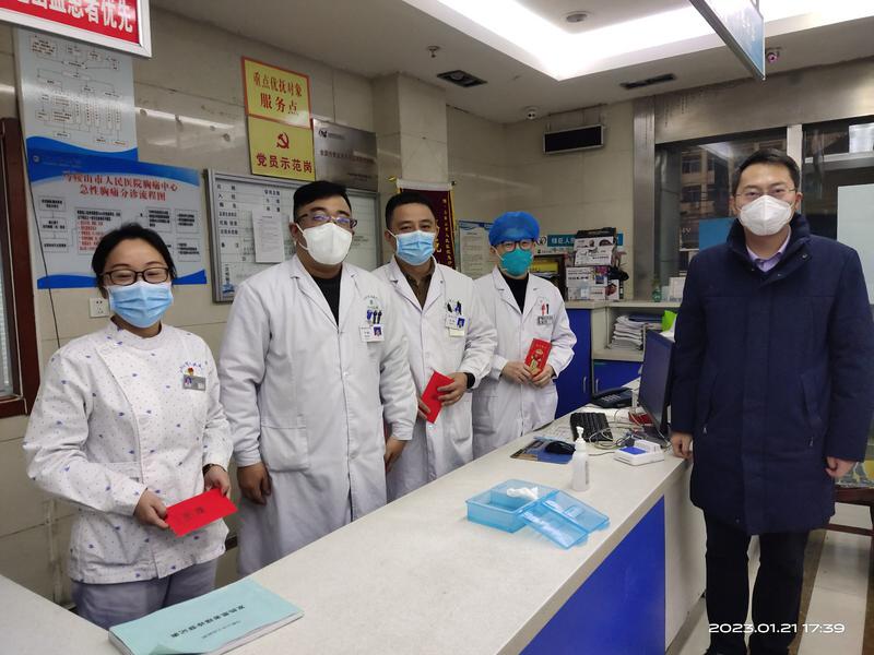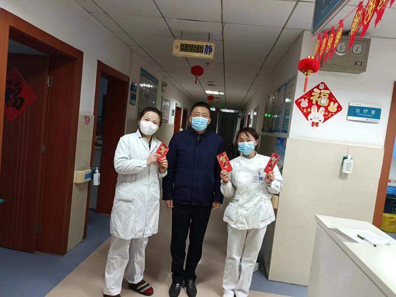 送走吉祥虎,迎來如意兔。2023年1月21日,又是一年除夕夜。在這闔家團(tuán)圓、喜氣祥和的日子里,醫(yī)院領(lǐng)導(dǎo)班子帶領(lǐng)部分職能科室負(fù)責(zé)人組成5個(gè)慰問小組,向堅(jiān)守一線的醫(yī)務(wù)人員送去新春的祝福和親切的問候,感謝大家一年來的辛勤勞動(dòng)和默默付出,并向值班人員送上春節(jié)慰問紅包。