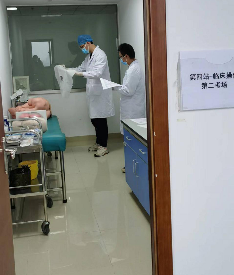 年度技能考核內容依照《2021年度安徽省住院醫(yī)師規(guī)范化培訓結業(yè)臨床實踐能力考核形式及考站設置標準》(附件3),完全模擬住院醫(yī)師結業(yè)考核形式,設置為五站式考核,共設5個獨立考站,分別為第1站(接診病人),第2站(臨床思維1),第3站(臨床思維2),第4站(臨床操作),第5站(交流溝通),每站設兩個考點,每個考點由2名考官考核打分。本次考試第1、2、3、5站為內科所屬8個科室提供病例。常用技能及操作包括:胸腔穿刺、腹腔穿刺、腰椎穿刺、骨髓穿刺、導尿術、留置胃管等??荚嚨攸c設在醫(yī)院OSCE考試中心。