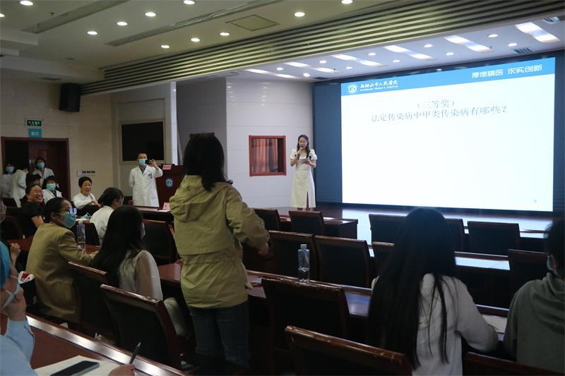 專(zhuān)題講座環(huán)節(jié),院感辦主任駱玉喬剖析了等級(jí)醫(yī)院評(píng)審工作中臨床常見(jiàn)的問(wèn)題,帶領(lǐng)大家對(duì)醫(yī)院感染暴發(fā)進(jìn)行了桌面推演,為各科室今后的院感工作進(jìn)行指導(dǎo),并對(duì)等級(jí)醫(yī)院評(píng)審中院感質(zhì)控部分提出要求?;顒?dòng)最后進(jìn)行了院感知識(shí)有獎(jiǎng)競(jìng)答,大家踴躍參與、爭(zhēng)相競(jìng)答,現(xiàn)場(chǎng)氣氛熱烈。寓教于樂(lè)的活動(dòng)形式,既給繁忙勞累的醫(yī)務(wù)人員帶來(lái)片刻的放松,又使大家溫習(xí)熟記了許許多多的院感知識(shí),強(qiáng)化了全院醫(yī)務(wù)人員的院感防控意識(shí)。