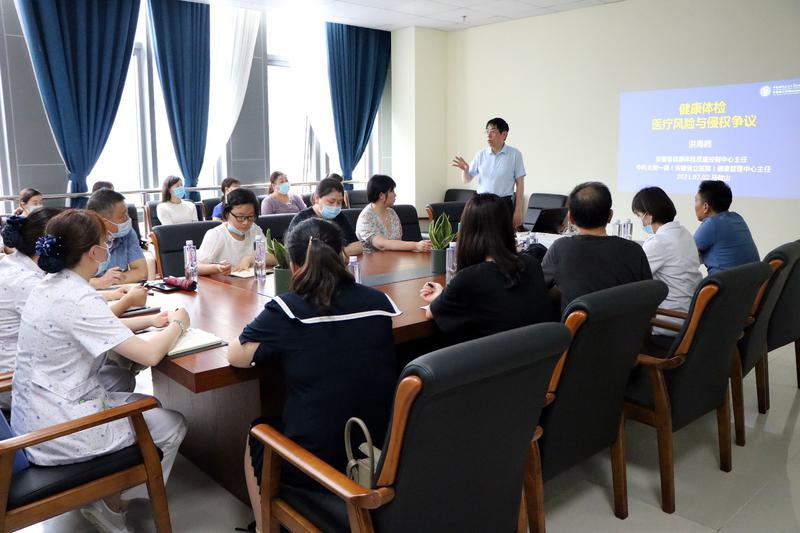 下午,安徽省健康體檢質(zhì)量控制中心主任、中科大附一院(安徽省立醫(yī)院)健康管理中心主任洪海鷗在健康管理中心會議室,作題為《健康體檢醫(yī)療風(fēng)險與侵權(quán)爭議》的講座。洪主任從抓基礎(chǔ)、強(qiáng)管理、做科學(xué)、強(qiáng)宣傳等幾個方面結(jié)合相關(guān)案例及規(guī)章制度對醫(yī)療風(fēng)險與侵權(quán)爭議為大家進(jìn)行了講解。隨后中科大附一院(安徽省立醫(yī)院)健康管理中心護(hù)士長姚蓓為大家作題為《健康之下感控先行》的講座,她從執(zhí)行標(biāo)準(zhǔn)背景、執(zhí)行標(biāo)準(zhǔn)計劃、執(zhí)行標(biāo)準(zhǔn)過程、執(zhí)行標(biāo)準(zhǔn)成效及體會和建議五個方面對構(gòu)建行業(yè)標(biāo)準(zhǔn)、實現(xiàn)精準(zhǔn)感控進(jìn)行了解讀。本次講座為全市各級健康體檢機(jī)構(gòu)工作者解答了日常工作中面臨的疑難問題,也為彼此溝通和交流搭建了平臺。