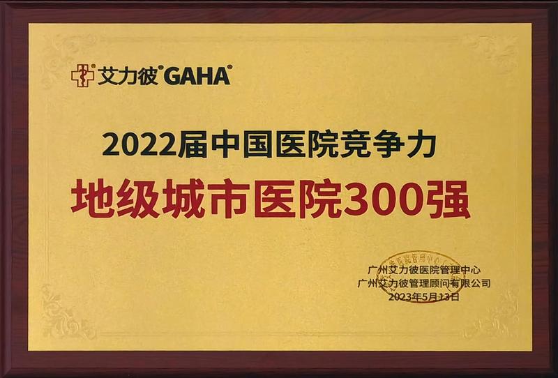 【喜訊】市人民醫(yī)院榮獲艾力彼2022屆中國醫(yī)院競爭力地級城市醫(yī)院300強!