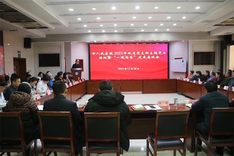 2023年12月20日,市人民醫(yī)院2023年雙退黨支部主題黨日活動在門診八樓一號會議室舉行,此次主題黨日活動暨“一院兩區(qū)”發(fā)展座談會旨在加強黨員之間的交流和溝通,促進醫(yī)院發(fā)展。院領導班子成員,雙退黨總支書記,相關職能科室負責人及40位退休同志代表參加了座談會。