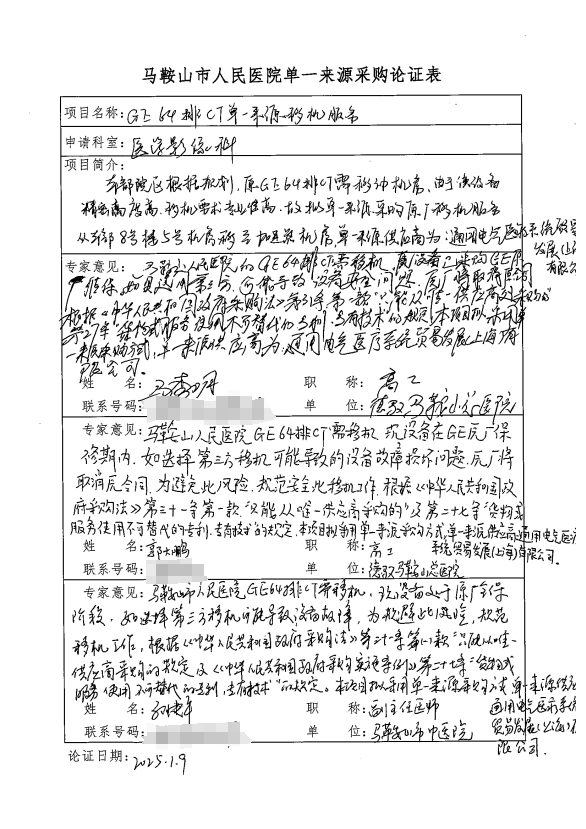 馬鞍山市人民醫(yī)院雨山湖院區(qū)在用一臺GE 64排CT,設備現(xiàn)于5號機房運行。根據(jù)雨山湖院區(qū)的規(guī)劃,擬將CT遷移至原直線加速器機房。由于設備資產價值昂貴、精密程度高、移機要求專業(yè)性強,故需要采購原廠移機服務。為此擬單一來源采購。