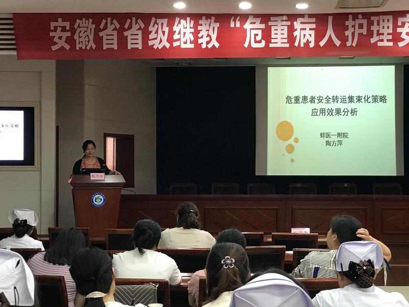 學(xué)習(xí)班特邀弋磯山醫(yī)院陶秀彬主任、蚌醫(yī)附院陶芳萍主任,以及我院4名副主任護(hù)師進(jìn)行授課。授課專家們圍繞基于病人關(guān)切的護(hù)理服務(wù)質(zhì)量改進(jìn)、危重患者安全轉(zhuǎn)運(yùn)集束化策略應(yīng)用效果分析、SBAR醫(yī)護(hù)溝通模式在危重患者護(hù)理中的應(yīng)用、危重病人護(hù)理風(fēng)險因素識別評估與防范、危重病人管道安全護(hù)理策略、情景模擬教學(xué)等多方面的議題進(jìn)行學(xué)術(shù)授課。學(xué)習(xí)班內(nèi)容豐富、實(shí)用性強(qiáng)、專家們精彩的學(xué)術(shù)講座迎來了熱烈的掌聲,與會人員均表示受益匪淺。