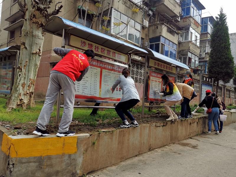 志愿者們擦拭社區(qū)防疫宣傳欄,大家干的熱火朝天,通過大家的辛勤勞動,周圍的環(huán)境面貌煥然一新。