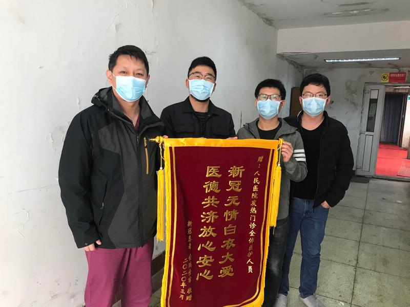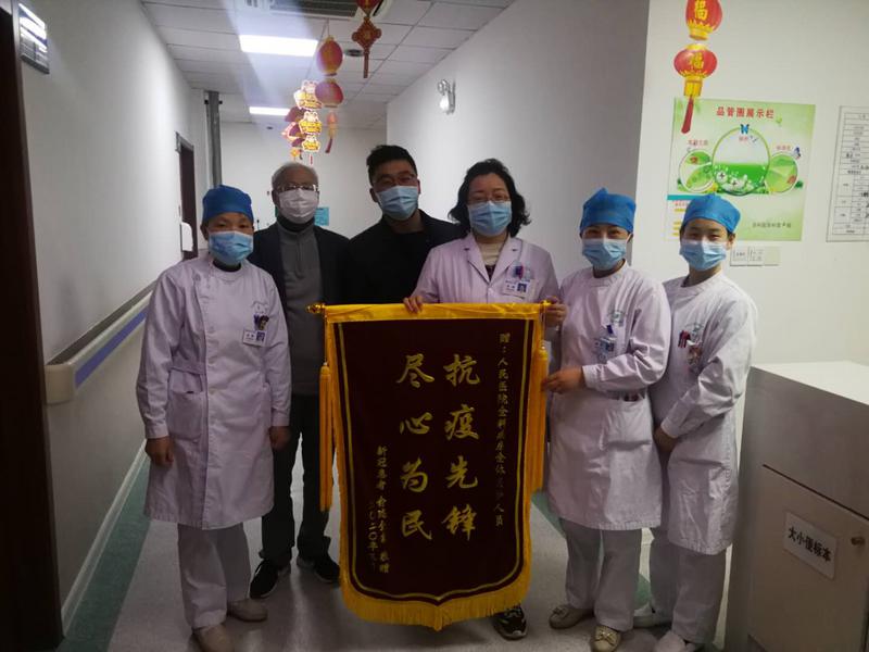 4月1日、2日,康復(fù)的新冠肺炎感染者俞先生專程趕到市人民醫(yī)院,向發(fā)熱門診和全科醫(yī)學(xué)科的醫(yī)護(hù)工作者送來了“新冠無情白衣大愛 醫(yī)德共濟(jì)放心安心”、“抗疫先鋒 盡心為民”的錦旗,以此感謝醫(yī)務(wù)人員在其夫妻被確診的過程中給予他們的無微不至的關(guān)懷與照顧。