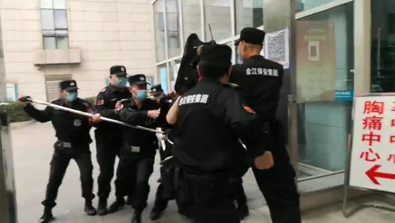 門診安保人員見其持刀后立即使用盾牌和鋼叉將醫(yī)務(wù)人員與該患者隔開,同時請求特勤增援,黨政辦警務(wù)室接到救援訊號后按流程報告院反恐領(lǐng)導(dǎo)小組,同時立即啟動醫(yī)院反恐應(yīng)急預(yù)案,一方面由安保隊長帶領(lǐng)特勤保安到達(dá)現(xiàn)場救援,一方面部署安保力量,疏散在場其他人員,等待特勤分隊支援。