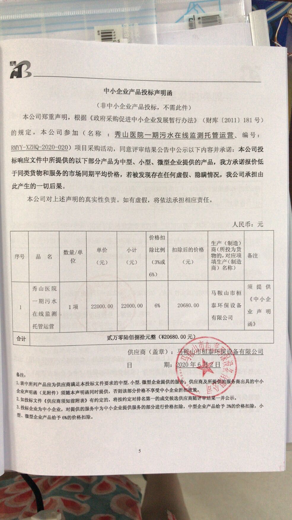成交供應(yīng)商名稱:馬鞍山市桓泰環(huán)保設(shè)備有限公司