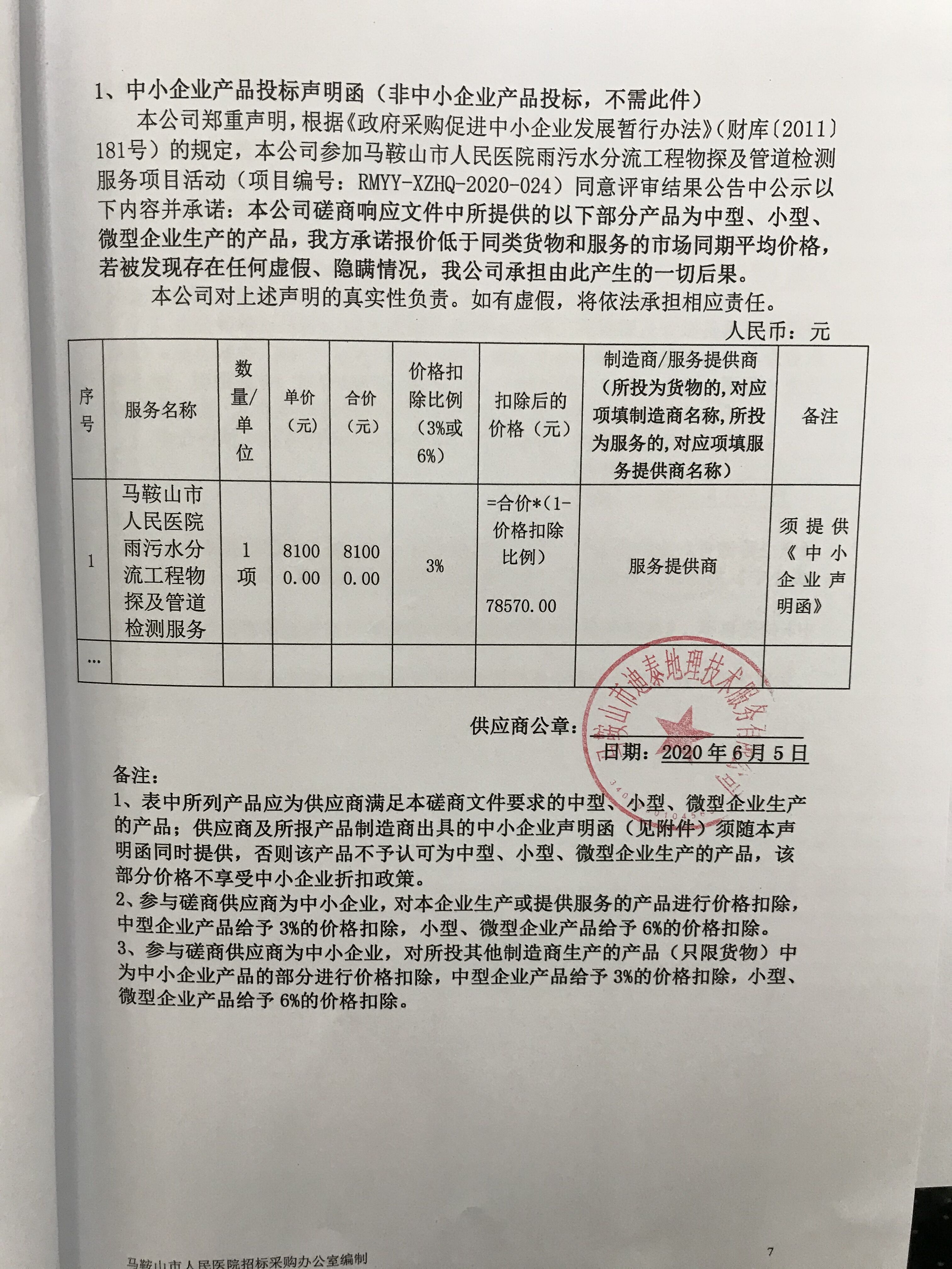 馬鞍山市人民醫(yī)院雨污水分流工程物探及管道檢測服務(wù)項(xiàng)目采購成交公告