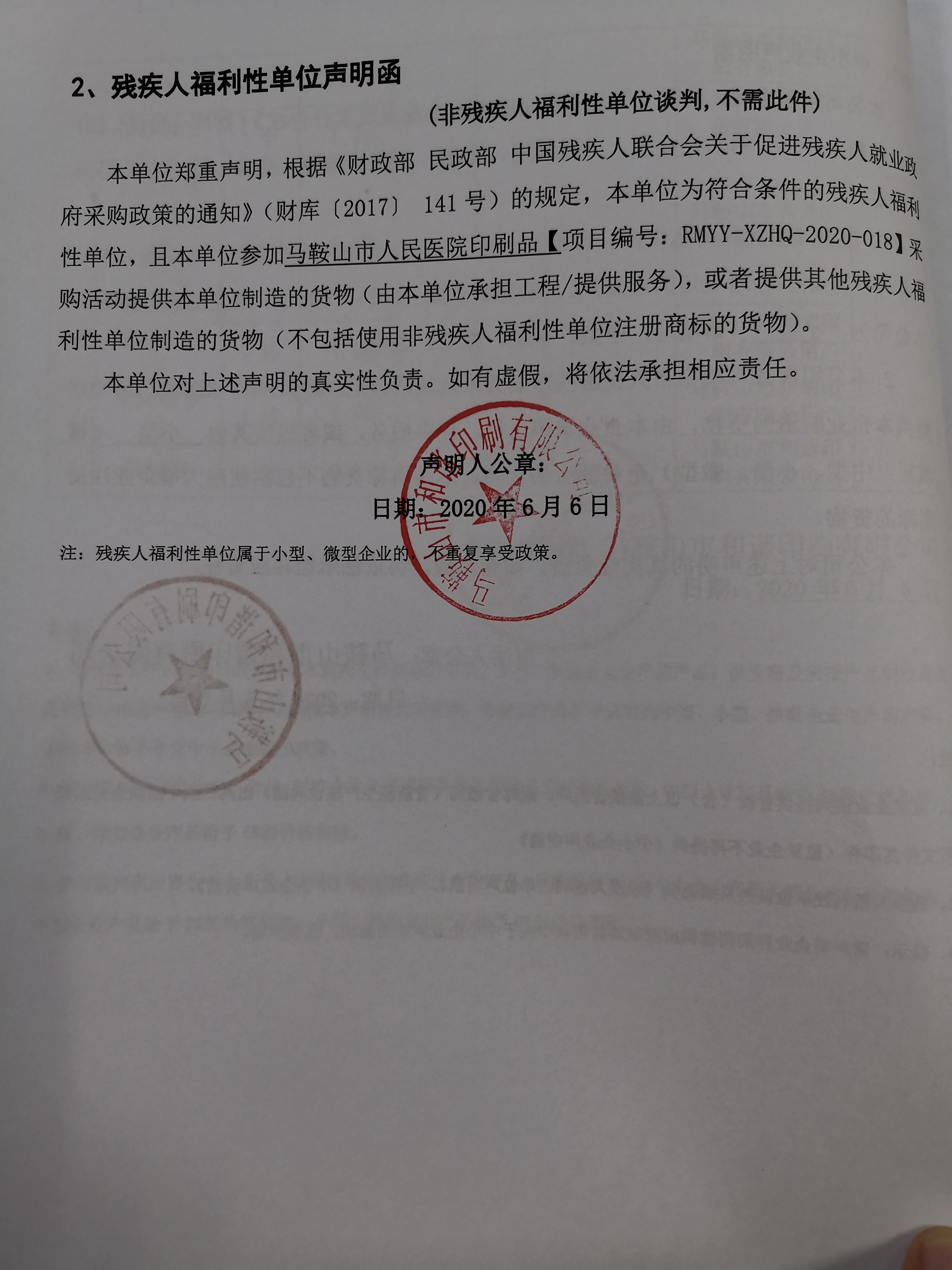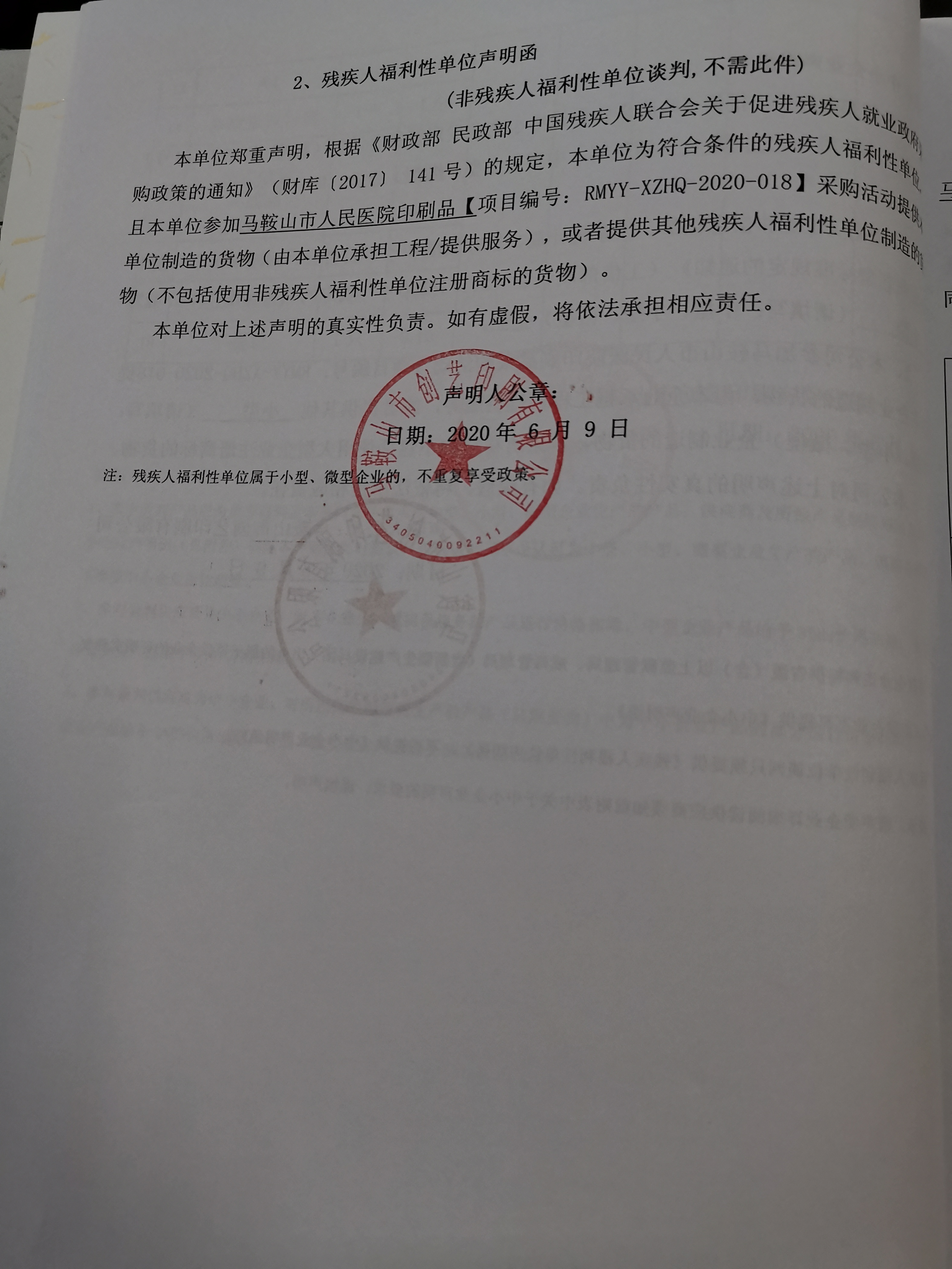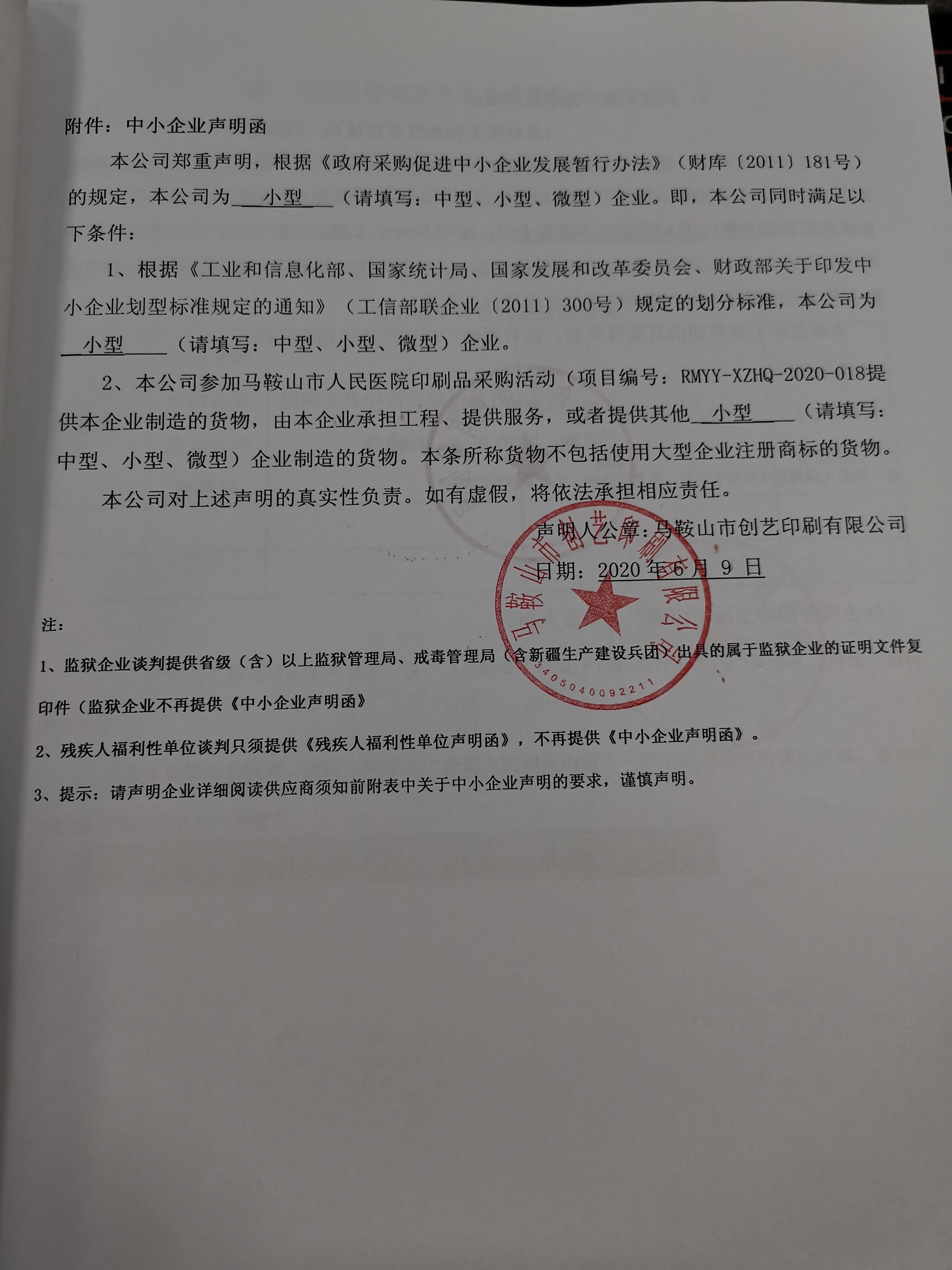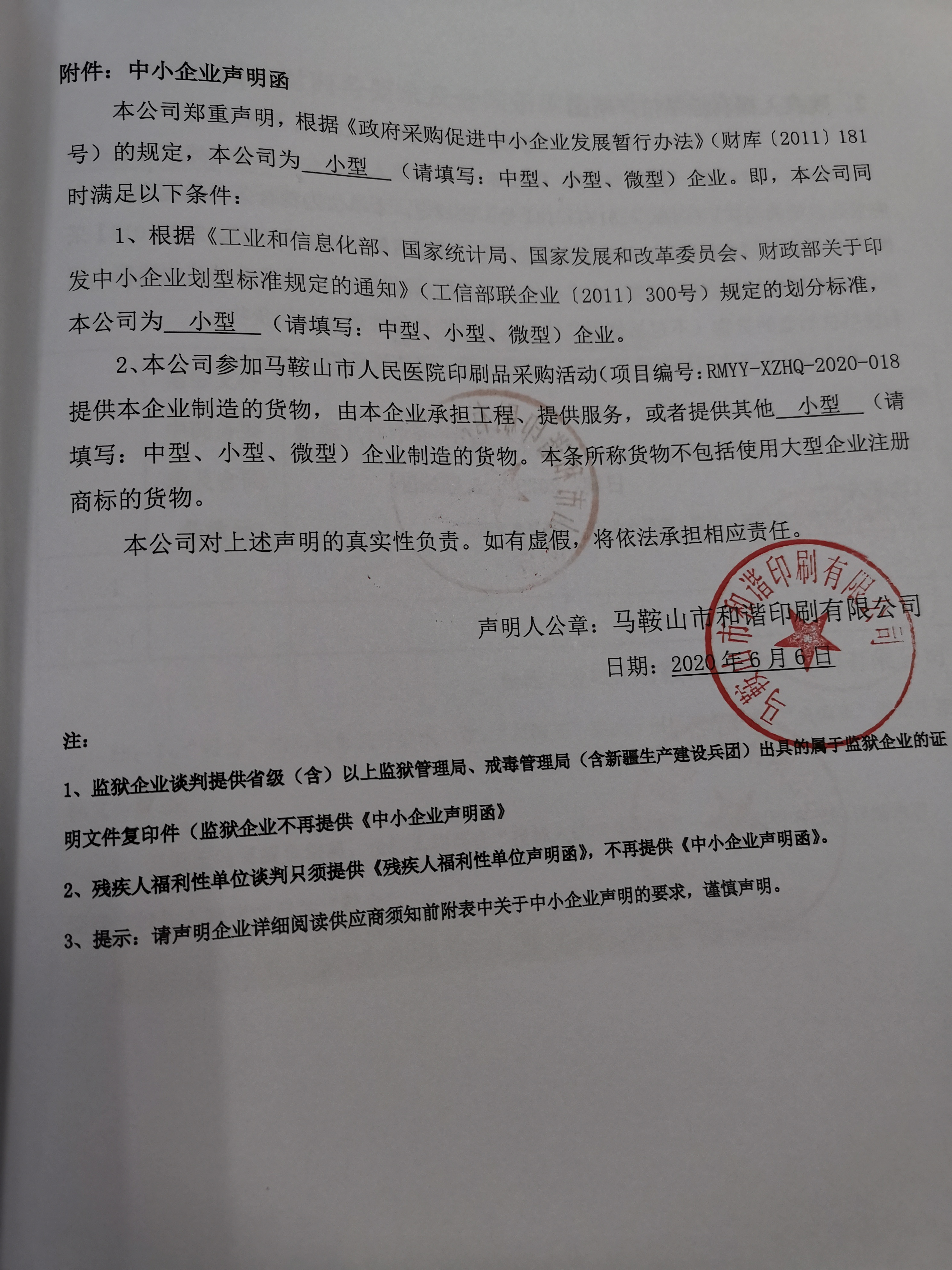馬鞍山市人民醫(yī)院印刷品項目采購成交公告