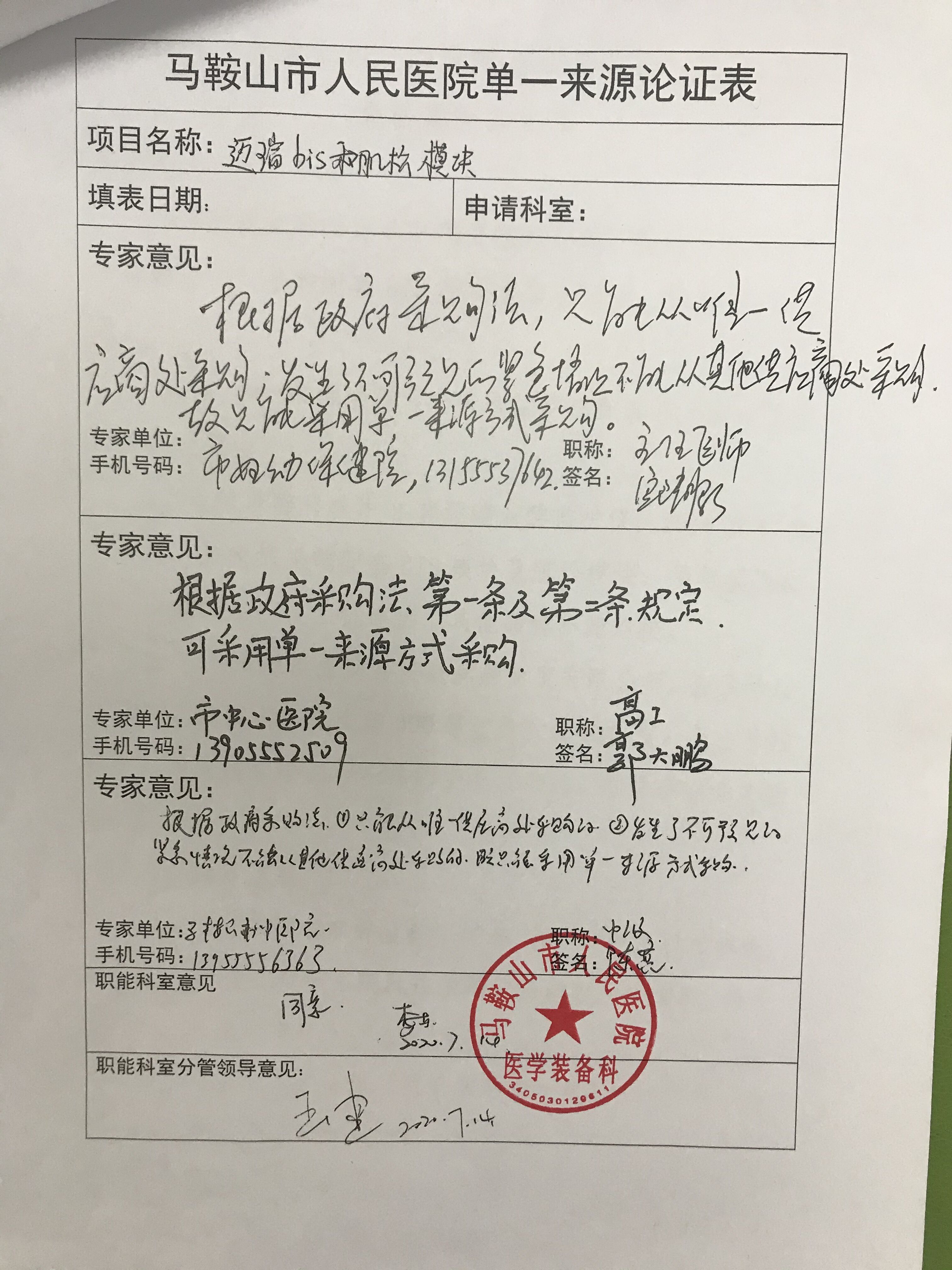 馬鞍山市人民醫(yī)院邁瑞麻醉監(jiān)護(hù)儀BIS模塊及肌松模塊采購項(xiàng)目單一來源采購公告