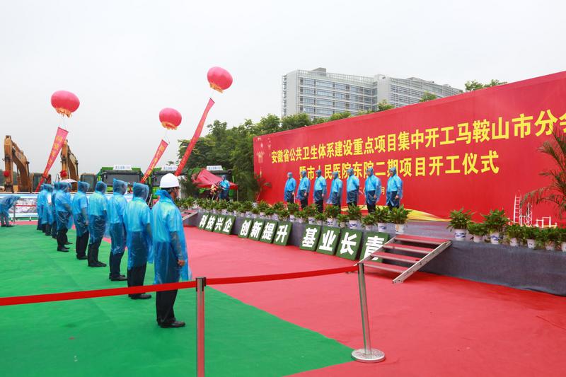 7月11日上午,安徽省公共衛(wèi)生體系建設(shè)重點項目集中開工馬鞍山市分會場暨市人民醫(yī)院東院二期項目開工儀式舉行。市委書記張岳峰出席儀式并宣布項目開工。市委副書記、常務(wù)副市長吳勁致辭。十七冶集團董事長喻世功出席。副市長方文主持。
