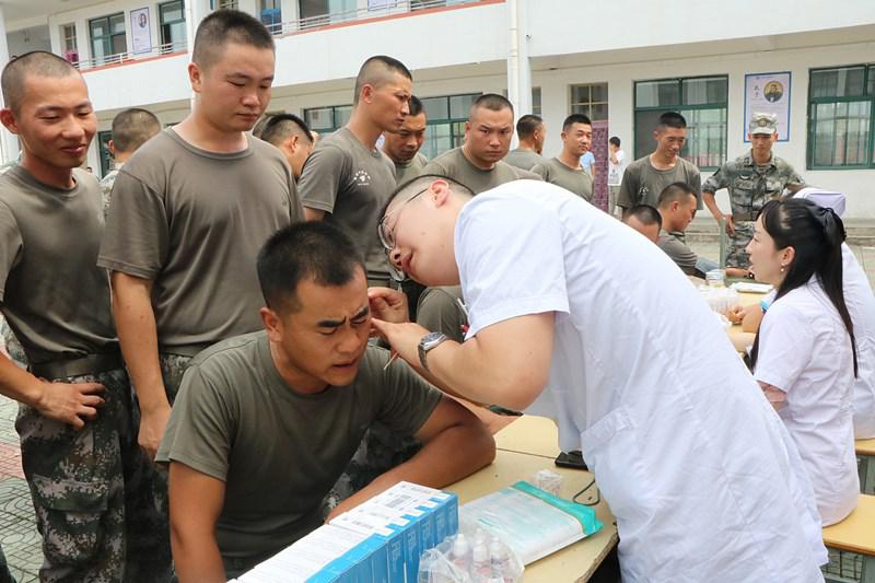由于連日來(lái)的抗洪搶險(xiǎn),不少官兵因長(zhǎng)時(shí)間在悶熱潮濕的環(huán)境中高強(qiáng)度奮戰(zhàn),出現(xiàn)了不同程度的曬傷、感冒等癥狀。醫(yī)院全科、皮膚科、外科的醫(yī)護(hù)人員抵達(dá)部隊(duì)官兵駐點(diǎn)后即現(xiàn)場(chǎng)開(kāi)展義診,通過(guò)測(cè)量血壓、體格檢查和問(wèn)診等方式為官兵進(jìn)行診療服務(wù),關(guān)注官兵身心健康,并開(kāi)具了皮膚類(lèi)疾病藥、耳鼻喉類(lèi)疾病藥和防暑降溫的藥品,指導(dǎo)高溫防暑等注意事項(xiàng),現(xiàn)場(chǎng)發(fā)放風(fēng)油精、創(chuàng)口貼、碘伏、一次性棉簽、醫(yī)用綁帶、爐甘石洗劑、新康泰克、鹽酸小檗堿片、蓮花清瘟顆粒等防暑降溫藥品,受到官兵的歡迎和好評(píng)。
