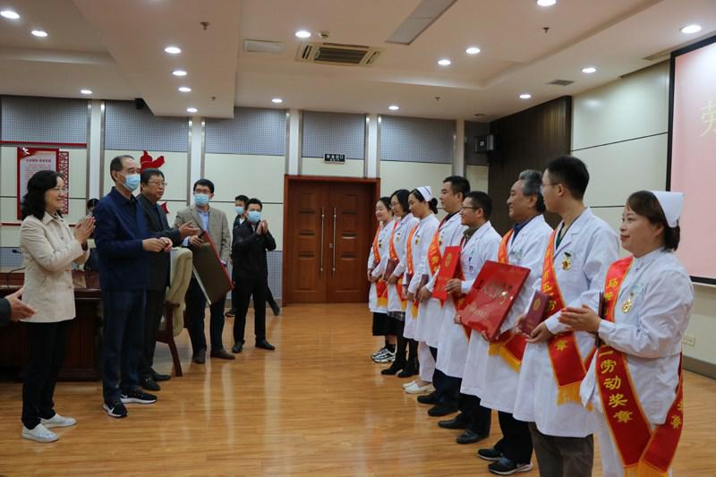 在此次評選中,我院榮獲“馬鞍山市五一勞動(dòng)獎(jiǎng)狀”;重癥醫(yī)學(xué)科榮獲“馬鞍山市工人先鋒號(hào)”稱號(hào);丁德權(quán)同志獲得新冠肺炎疫情防控工作“雙百”安徽省五一勞動(dòng)獎(jiǎng)?wù)?;援鄂醫(yī)療隊(duì)員陳燕、蔣冬梅、卓銀霞、朱陽陽、陳樹強(qiáng)、韋振平六位同志獲得“馬鞍山市五一勞動(dòng)獎(jiǎng)?wù)隆薄?/span>