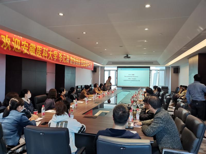 與會(huì)全體人員進(jìn)行了深層次的交流,會(huì)上就學(xué)科建設(shè)與管理、科研課題設(shè)計(jì)、麻醉醫(yī)療質(zhì)量控制、ERAS理念下優(yōu)化術(shù)中麻醉管理策略、圍手術(shù)期疼痛管理等方面進(jìn)行深入的探討。安徽醫(yī)科大學(xué)第一附屬醫(yī)院麻醉科將與我院麻醉手術(shù)科建立長(zhǎng)期交流合作關(guān)系,在科室醫(yī)療、教學(xué)、科研等方面為我們提供指導(dǎo)和幫助。