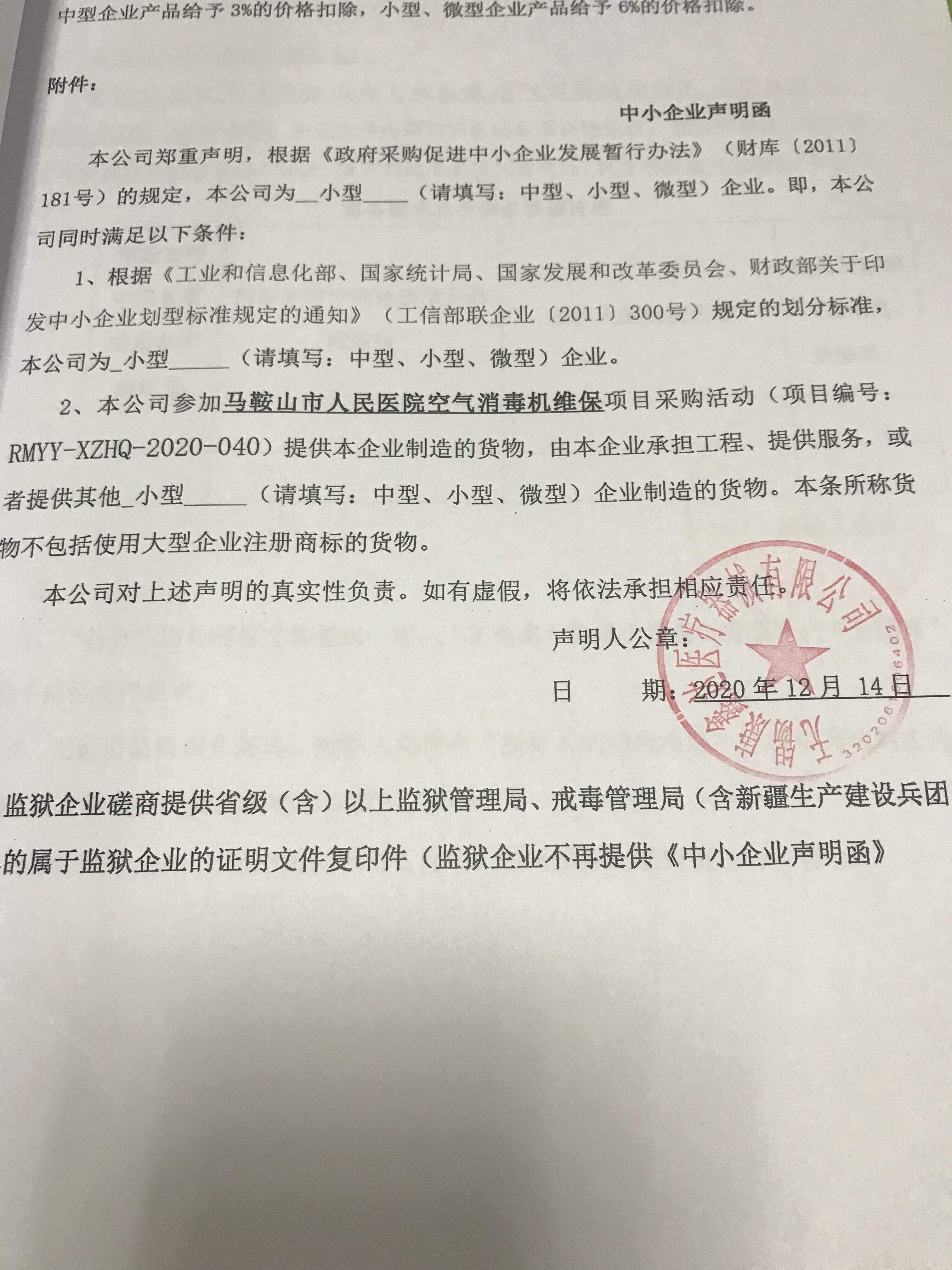 空氣消毒機(jī)維保服務(wù)項(xiàng)目采購成交公告