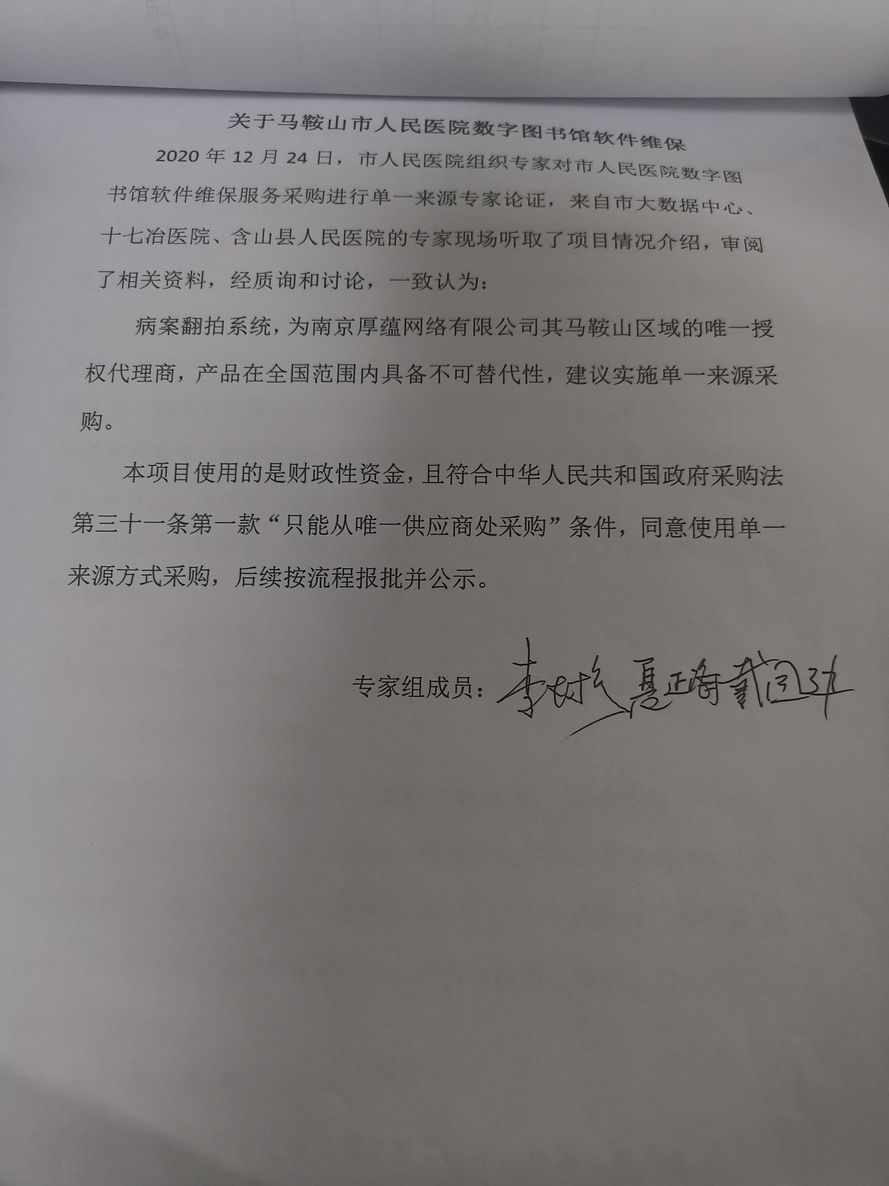 馬鞍山市人民醫(yī)院數(shù)字醫(yī)學(xué)圖書館維保項目 單一來源采購公告