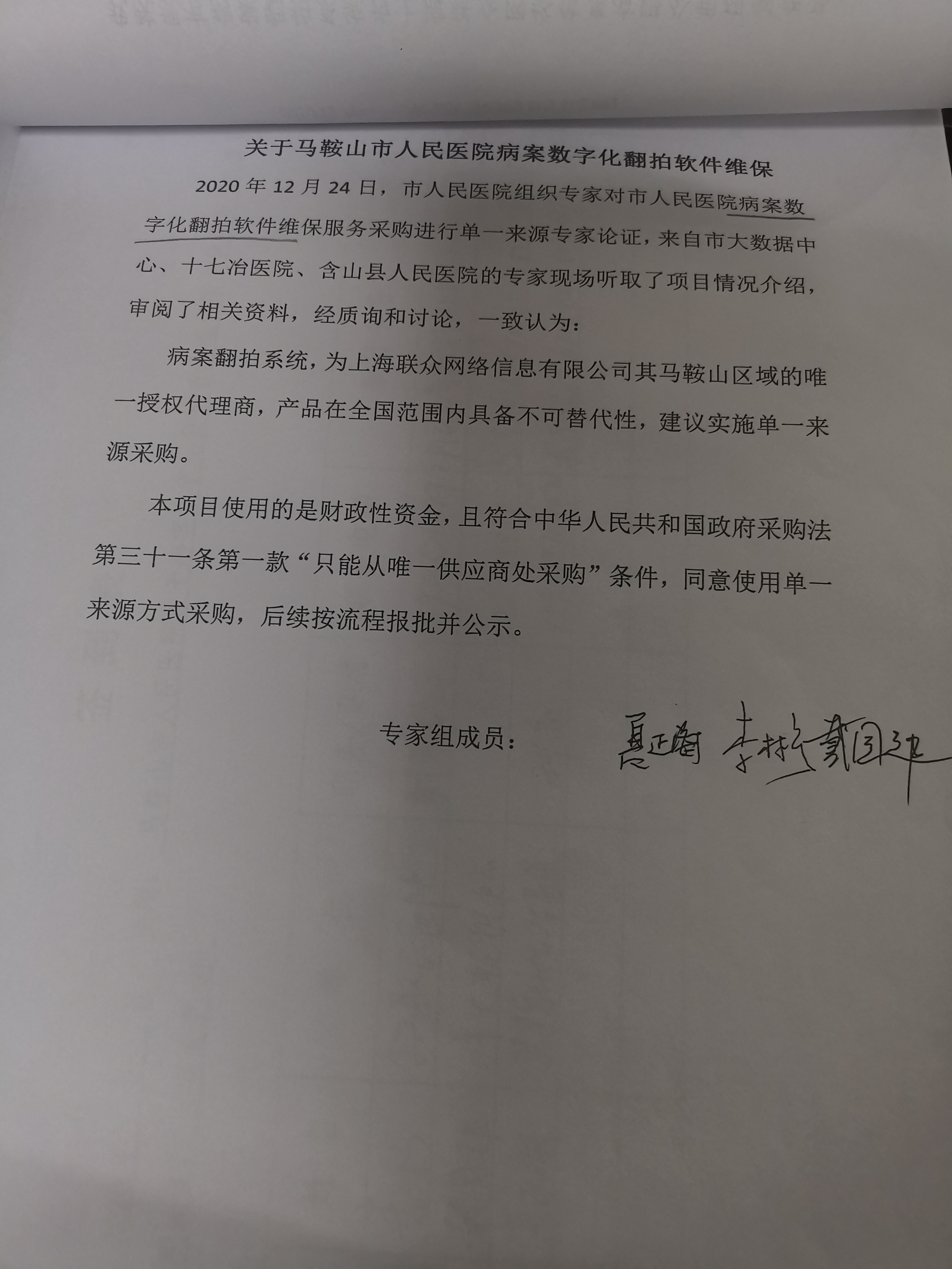 馬鞍山市人民醫(yī)院病案數(shù)字化翻拍維保項(xiàng)目 單一來源采購公告