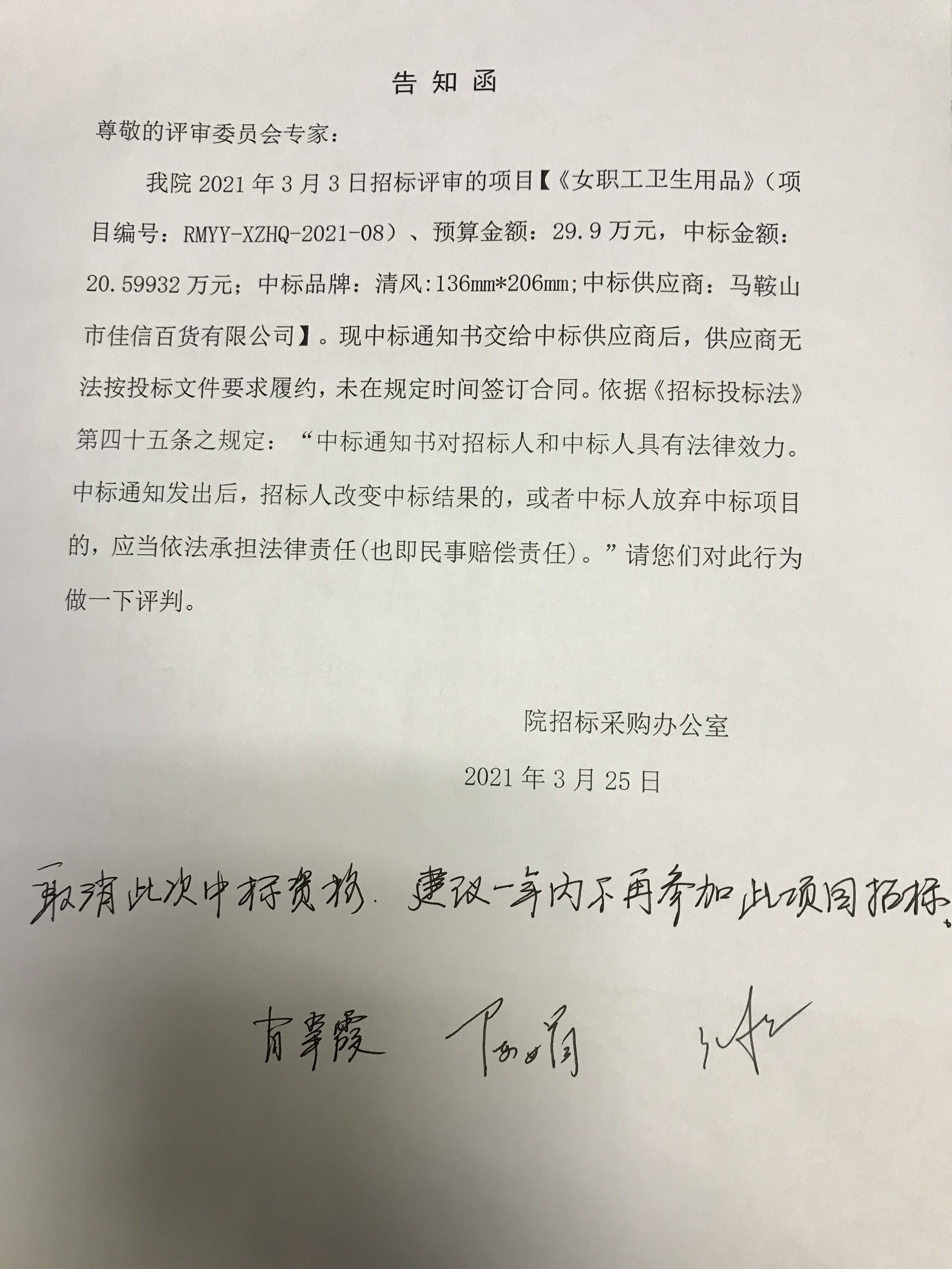 女職工衛(wèi)生用品 RMYY-XZHQ-2021-08 ,現(xiàn)成交供應(yīng)商因故放棄成交資格,并重新開(kāi)展采購(gòu)活動(dòng)。