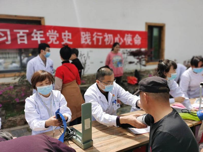 參觀學(xué)習(xí)結(jié)束后,外二黨支部又來到當(dāng)?shù)卮迩f開展義診活動。神經(jīng)外科、心胸外科、耳鼻咽喉科等科室醫(yī)護(hù)人員結(jié)合各自專業(yè)特長,為過往村民進(jìn)行常見病、慢性病的咨詢、初步篩查、診斷,以及普及醫(yī)學(xué)常識和健康知識,宣傳新冠肺炎疫情防控常識。義診期間,全體成員精神飽滿、熱情周到,尤其對老年人、殘疾人和孕婦等特殊人群的健康咨詢做到耐心傾聽、精準(zhǔn)指導(dǎo),為當(dāng)?shù)匕傩账蜕蠝嘏姆?wù)。大家紛紛表示在今后的學(xué)習(xí)和工作中將結(jié)合專業(yè)優(yōu)勢,不斷發(fā)揮黨員模范帶頭作用,以扎實(shí)的作風(fēng)、嶄新的面貌做好本職工作,為患者提供更加優(yōu)質(zhì)高效的診療服務(wù),以優(yōu)異成績迎接建黨一百周年。
