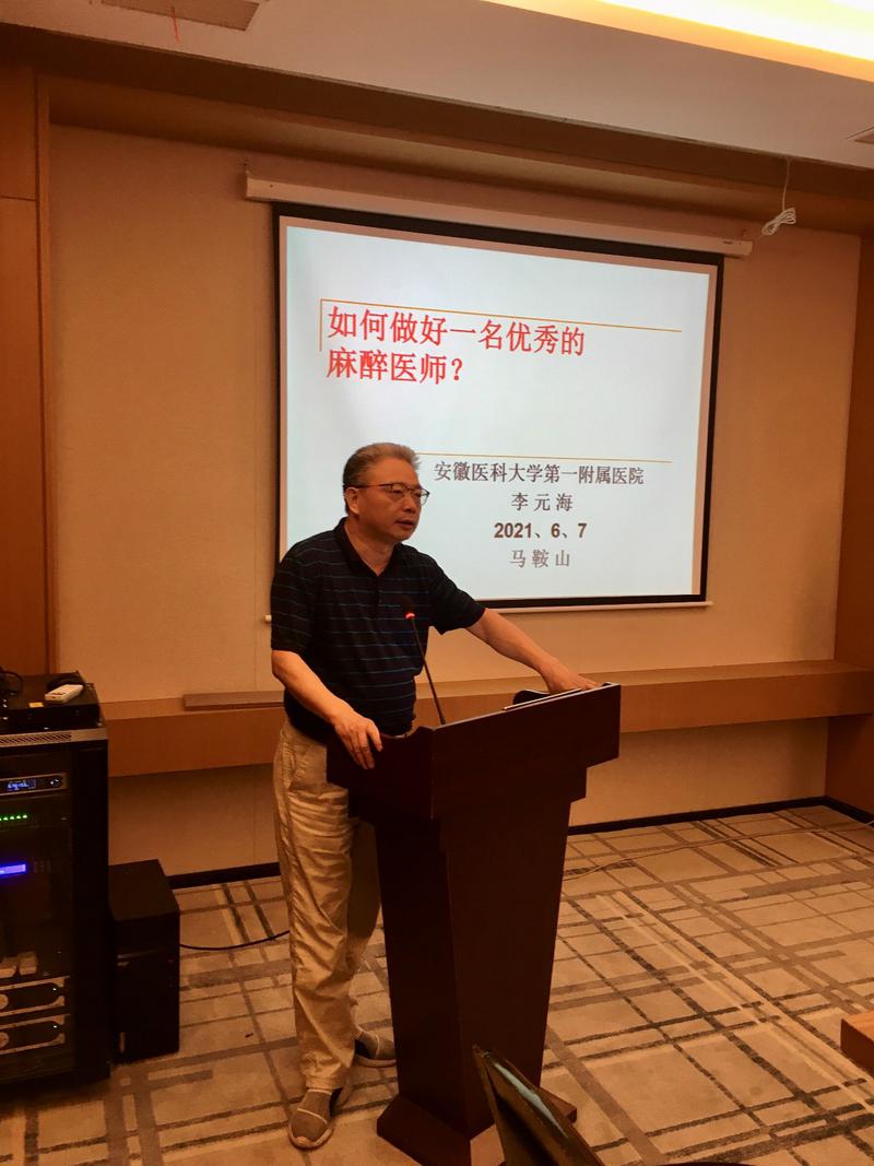 安徽醫(yī)科大學(xué)第一附屬醫(yī)院李元海教授受邀為帶教老師及住培學(xué)員作專題講座。他從職業(yè)規(guī)劃、臨床實(shí)踐、醫(yī)學(xué)人文、法律意識等11個(gè)方面闡述了如何做一名優(yōu)秀的麻醉醫(yī)師。