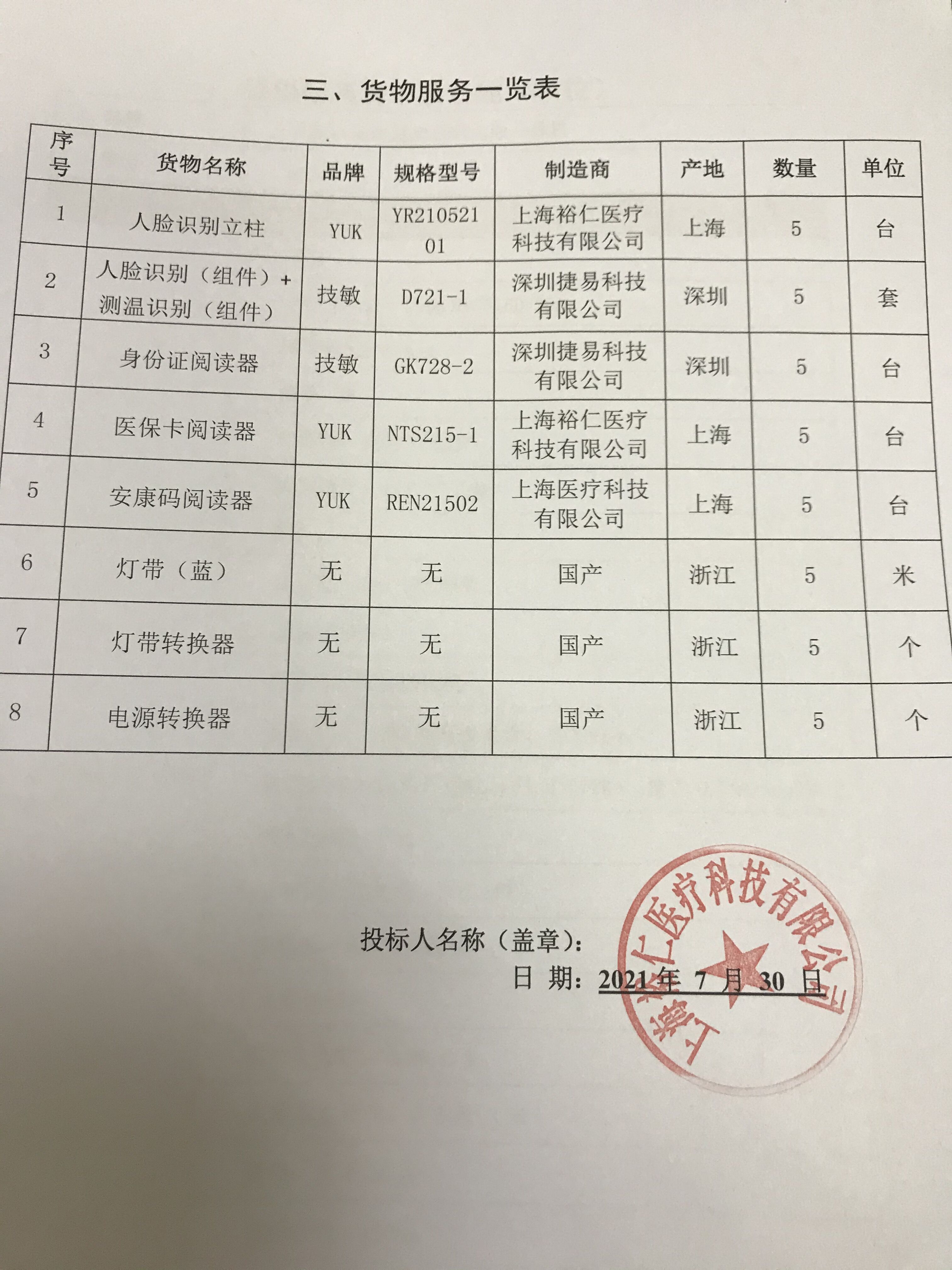 第一中標(biāo)候選人:上海裕仁醫(yī)療科技有限公司