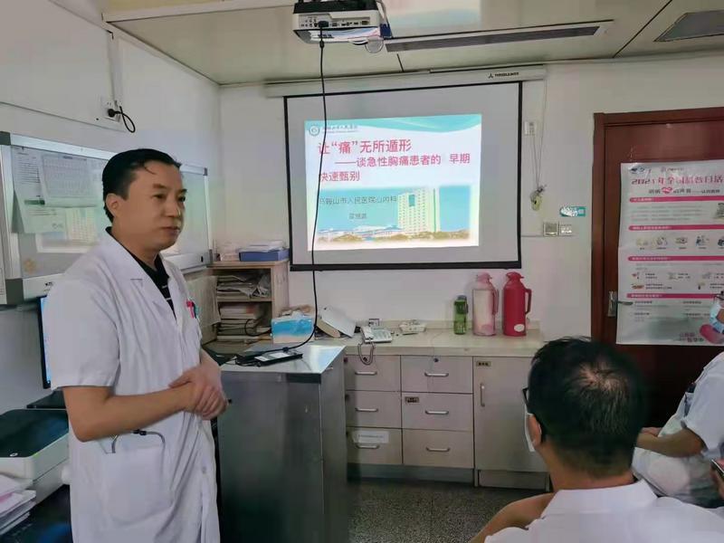 心內(nèi)科副主任邵旭武對規(guī)培和實(shí)習(xí)生講授了“胸痛的鑒別診斷”,憑借豐富的臨床經(jīng)驗(yàn)及教學(xué)經(jīng)歷,從急性胸痛的常見原因、癥狀、體征,診斷基本思路等知識點(diǎn)切入,深入淺出地重點(diǎn)講解幾種危急重癥胸痛的診斷與治療。授課注重啟發(fā)、引導(dǎo)、激發(fā)學(xué)生們的興趣,講課過程思路嚴(yán)謹(jǐn)、富有激情。與會人員通過學(xué)習(xí),深刻地理解了胸痛的鑒別診斷及治療方法,獲益良多。