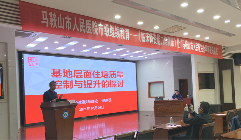 為提高市人民醫(yī)院臨床教學(xué)能力水平,加強高素質(zhì)師資隊伍培養(yǎng),提升教學(xué)質(zhì)量,10月29日,市人民醫(yī)院成功舉辦市級繼續(xù)教育項目——《臨床師資能力提升班》暨“馬鞍山市人民醫(yī)院全科師資培訓(xùn)班”。何永勝副院長(主持行政工作)主持會議,省衛(wèi)健委科教處二級調(diào)研員儲新生、安徽醫(yī)科大學(xué)第一附屬醫(yī)院原全科醫(yī)學(xué)科主任唐海沁、皖南弋磯山醫(yī)院麻醉科副主任醫(yī)師曹亞、市人民醫(yī)院口腔科副主任龔飛飛進行了授課。各專業(yè)基地、協(xié)同醫(yī)院和基層實踐基地等近150名師資參加培訓(xùn)。