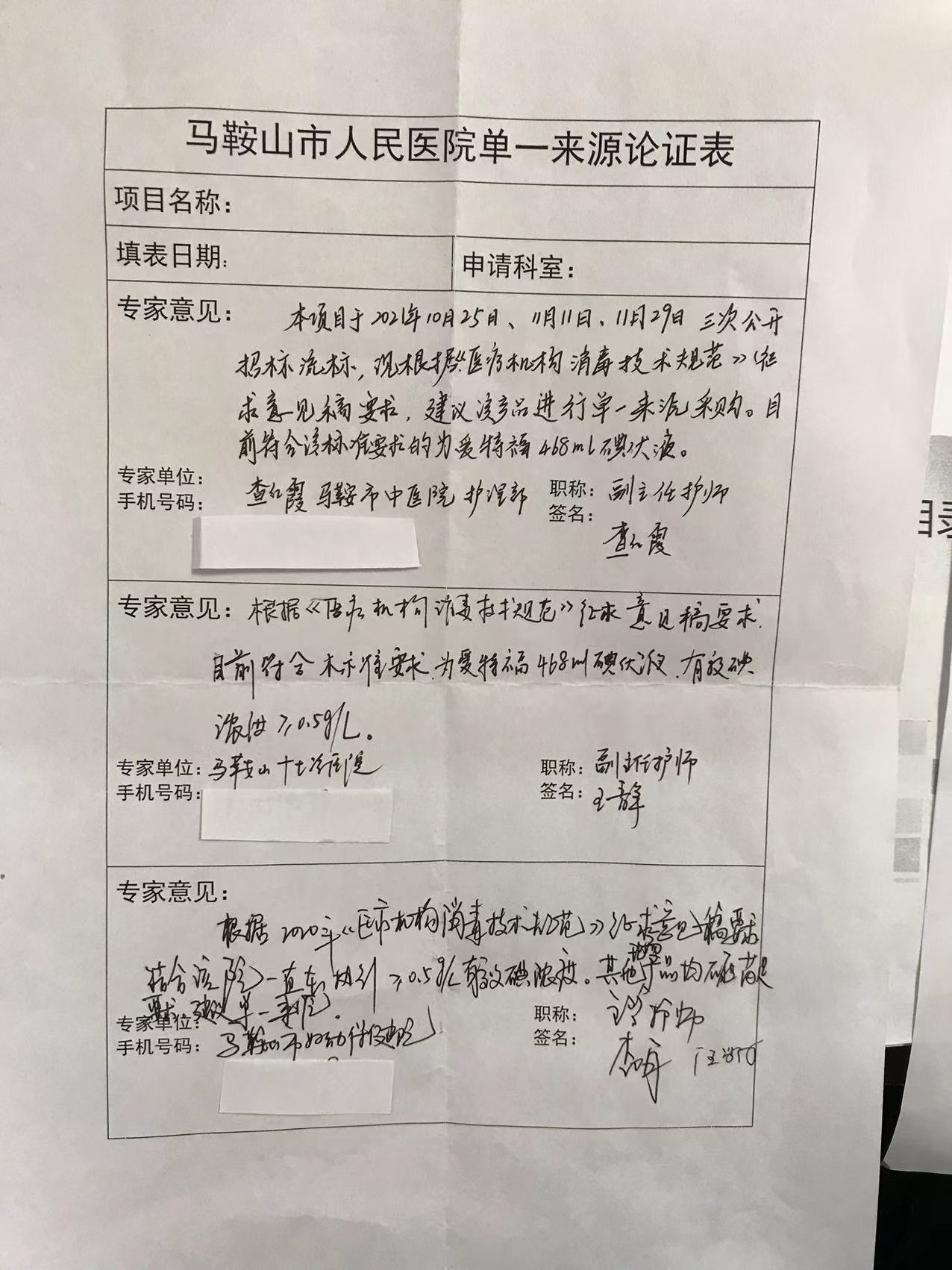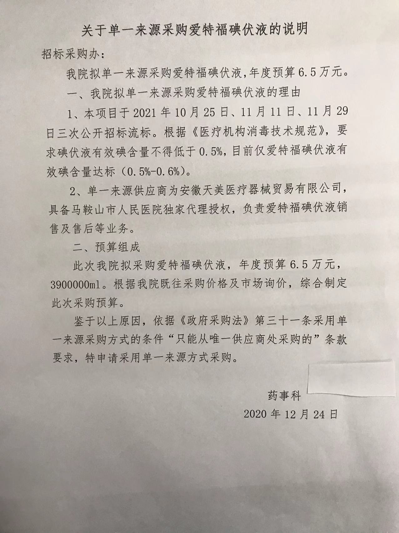馬鞍山市人民醫(yī)院人民醫(yī)院碘伏液單一來源采購公告(第四次)