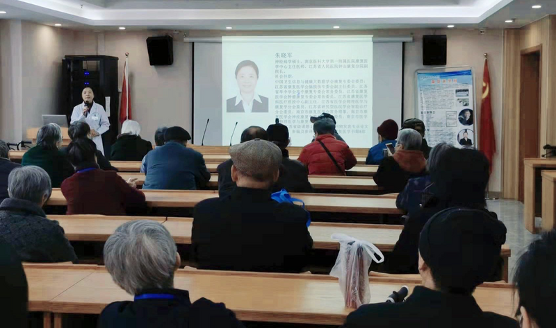 活動由老年醫(yī)學(xué)科湯華萍副主任主持,她首先介紹了康復(fù)醫(yī)學(xué)科主任朱曉軍——南京醫(yī)科大學(xué)第一附屬醫(yī)院(江蘇省人民醫(yī)院)康復(fù)醫(yī)學(xué)中心主任醫(yī)師、江蘇省人民醫(yī)院鐘山康復(fù)醫(yī)院副院長。朱曉軍主任向老人們介紹了我國人口老齡化的現(xiàn)狀以及健康老齡化的國家戰(zhàn)略。老年醫(yī)學(xué)科護士長楊羽做了《老年人跌倒的預(yù)防及應(yīng)急處理》小講座,內(nèi)容圖文并茂,授課淺顯易懂,受到了老人們的好評。在隨后開展的義診活動中,醫(yī)護人員為老人們提供了免費的醫(yī)療護理咨詢,并進行量血壓、測血糖等服務(wù)。在朱曉軍主任的指導(dǎo)下,通過現(xiàn)場查體、閱片,為一名被下肢疼痛困擾數(shù)月的老人進行會診。老年醫(yī)學(xué)科護士長楊羽來到護理區(qū),就一位植物生存狀態(tài)的老人在胃管、口腔及皮膚護理方面的問題與頤養(yǎng)中心的護士進行交流和指導(dǎo)。康復(fù)醫(yī)學(xué)科在朱曉軍主任、崔慶元副主任醫(yī)師的帶領(lǐng)下至康復(fù)大廳現(xiàn)場為老人的康復(fù)訓(xùn)練制定個性化的治療方案。