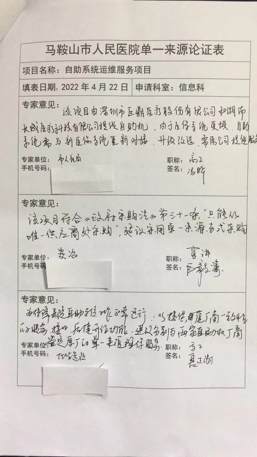 馬鞍山市人民醫(yī)院自助系統(tǒng)運維服務單一來源采購標前公示