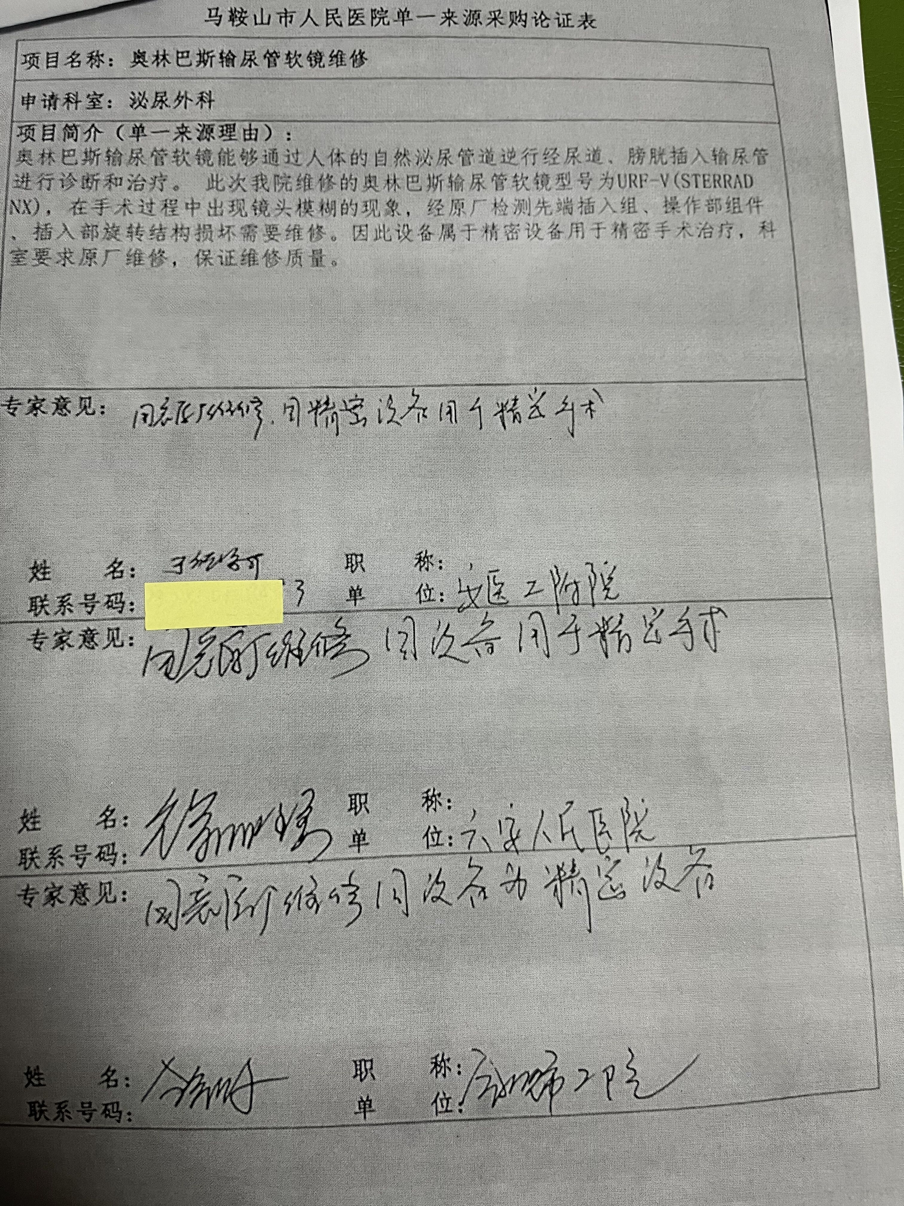 奧林巴斯輸尿管軟鏡維修項(xiàng)目院內(nèi)比選公告